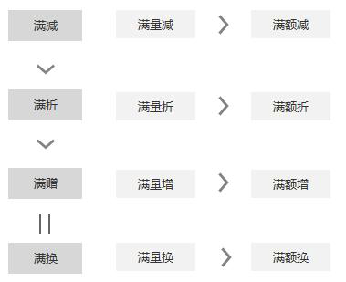 而這么多活動規(guī)則如何有序的在購物車進行聚合展示呢?除了每個網站固有的分級策略外,一般的活動優(yōu)先級展示是這樣的: