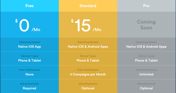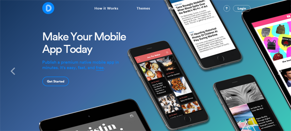 用戶在使用 DWNLD 時,當應用生成后,用戶可以自行選擇 app 主題色,排版和字體等設計風格,這樣每一款應用便能形成自己獨一無二的風格。DWNLD 帶有收費項目,即提供應用性能分析數(shù)據(jù),包括應用內(nèi)購買、廣告以及付費下載等、信息推送等,15 美元可包月。