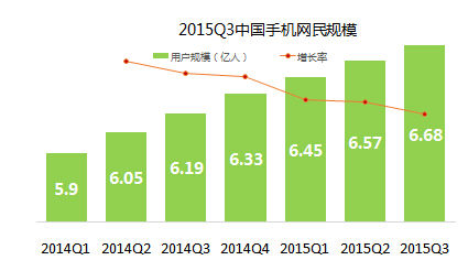 盡管數(shù)據(jù)顯示,截止到2015年第三季度,中國(guó)手機(jī)網(wǎng)民規(guī)模達(dá)到6.68億人,智能手機(jī)用戶規(guī)模為6.09億人,中國(guó)手機(jī)網(wǎng)民規(guī)模和智能手機(jī)用戶規(guī)模整體上呈現(xiàn)增長(zhǎng)趨勢(shì)。但不可忽略的事實(shí)是,增長(zhǎng)率卻是呈明顯下降趨勢(shì)的。