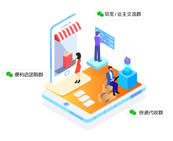 商家以小區(qū)為單位招募小區(qū)業(yè)主或小區(qū)店主成為團(tuán)長(zhǎng),創(chuàng)建公司控群的小區(qū)業(yè)主微信群