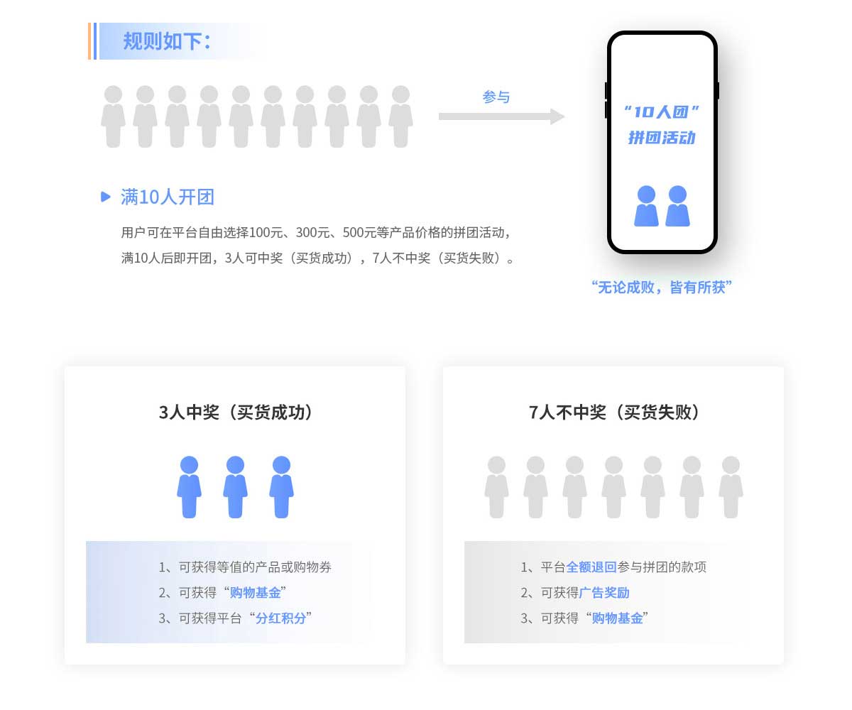 無參與門檻限制,所有用戶均可參與活動(dòng),并且參與拼團(tuán),無論中獎(jiǎng)與否,均有所獲。