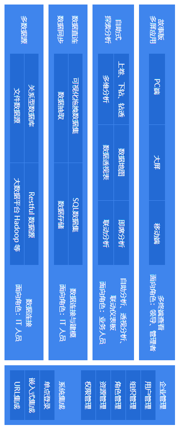 一站式大數(shù)據(jù)分析平臺(tái)。面向部門級(jí)或中小企業(yè)的自助式分析應(yīng)用,快速整合海量數(shù)據(jù),提供易用、高效的數(shù)據(jù)可視化分析。